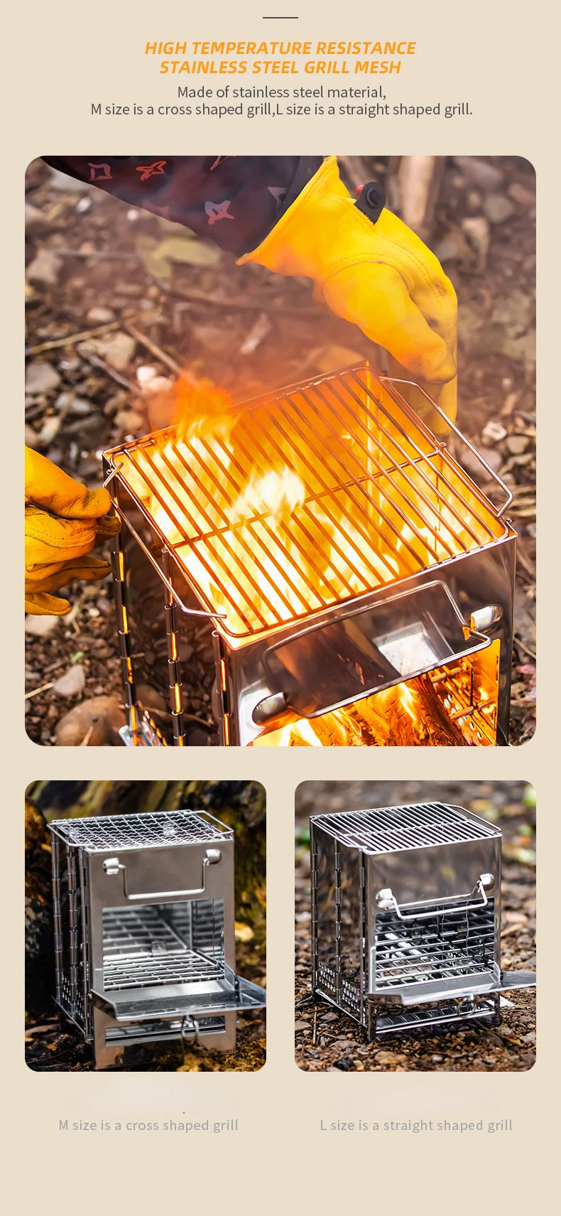 Denna spis är tillverkad av högkvalitativt rostfritt stål och är väderbeständig och byggd för att hålla på alla dina äventyr. Dess lätta men robusta design (966 g) kombinerar portabilitet med hållbarhet, medan dess moderna utseende ger en elegant touch till alla utomhusmiljöer. Från camping till trädgårdsfester är denna spis en pålitlig följeslagare.