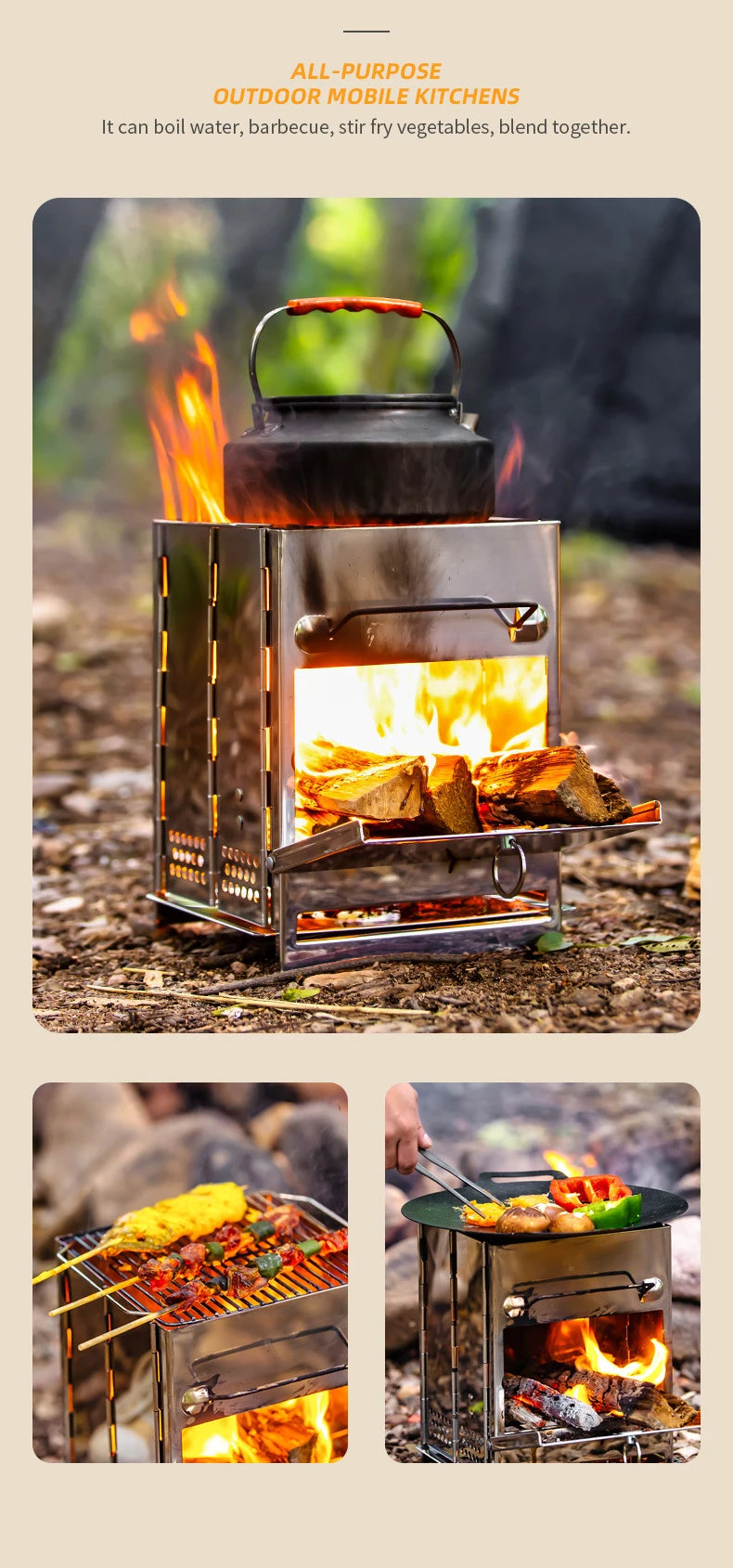 Tänk dig att du sitter vid en bergssjö, med solen nere under horisonten, och förbereder en varm måltid på din egen portabla spis. Denna kompakta kok- och grillkök i rostfritt stål ger dig lyxen av en fullfjädrad grill till vilken utomhusplats som helst. Oavsett om du campar, har en trädgårdsfest eller ger dig ut på ett äventyr, låter denna mångsidiga kök dig njuta av nygrillad mat utan krångel.