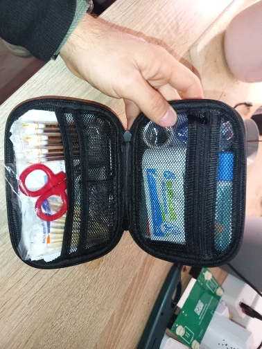 - Fullt utrustad – plåster, bandage, desinfektionsmedel, sax, pincett